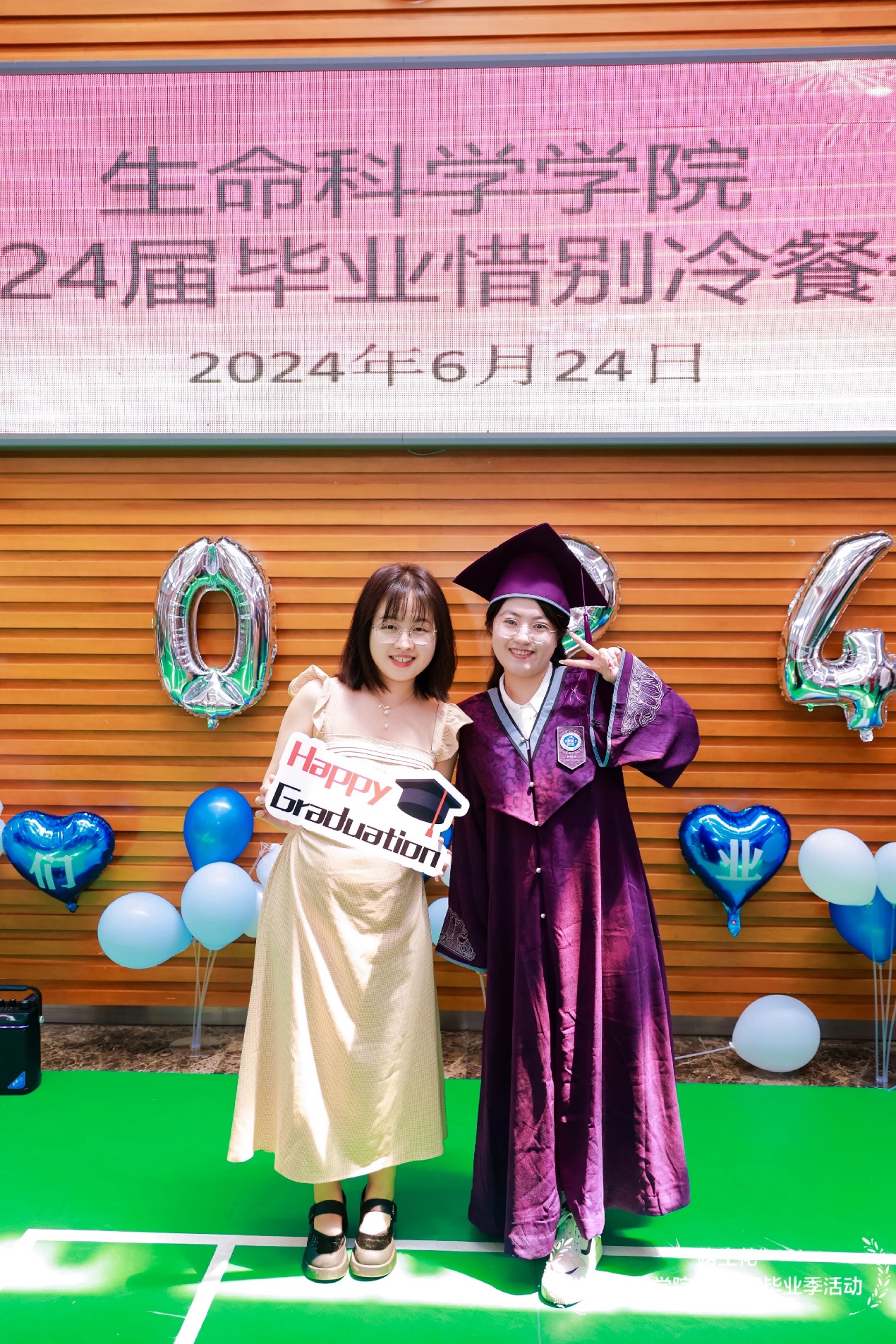 毕业典礼和毕业合影留念结束后,2024届毕业生换上了靓丽帅气的服装,来到了生科院前广场的红毯仪式现场,迎接这份独属于他们的毕业之路。于馨淇、金紫怡、于涵三位毕业生担任红毯仪式主持人。