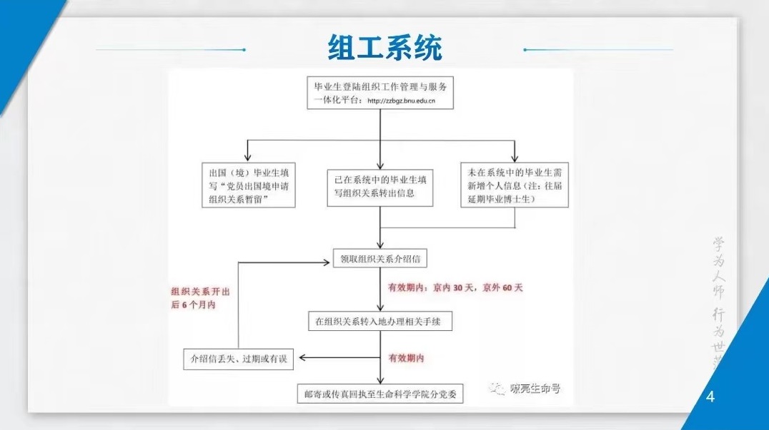 刘畅老师就党建相关问题进行了讲解。重点讲解了毕业生党组织关系转接操作流程,就组工系统的相关操作以及各种材料的填写、处理、转接进行了详细说明。